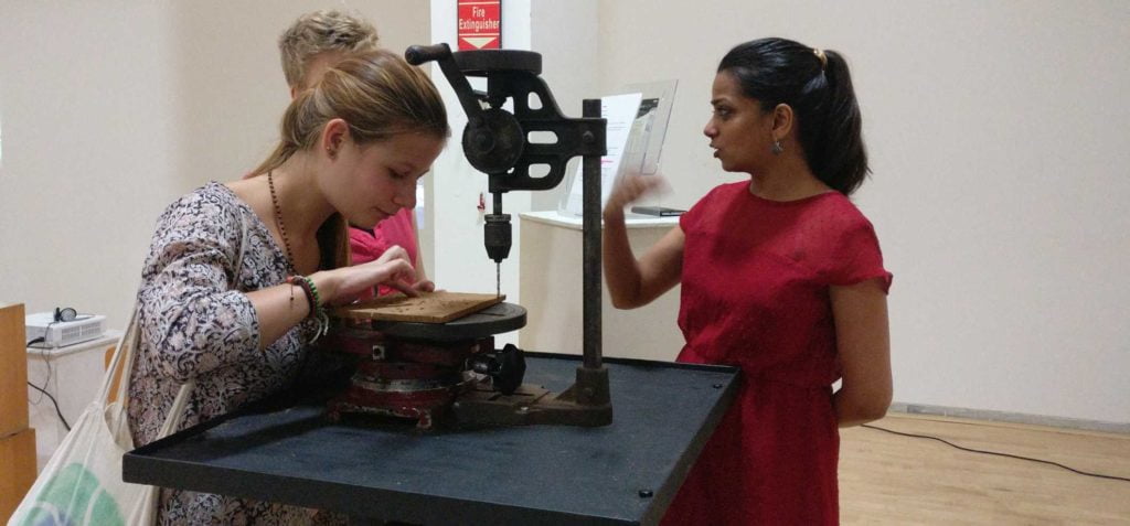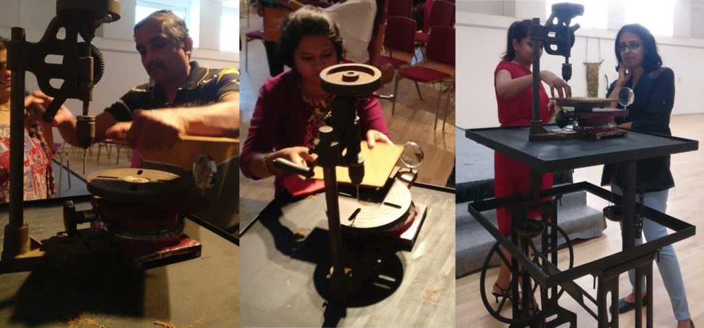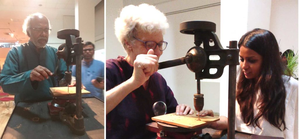 People of all ages were curious to see what this vintage looking apparatus was. Once they started using the drill which was over a 100 years old, it gave them a sense of how simple life was.